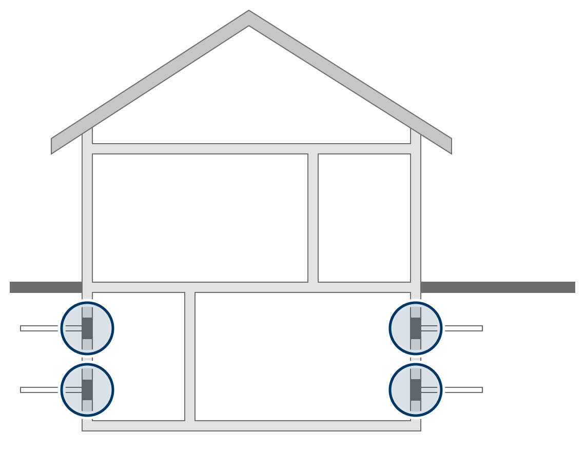 Allows sealing in all wall types thanks to the combination of a flange and 3-ribbed seals. For setting in concrete, closed on both sides ready for installation.