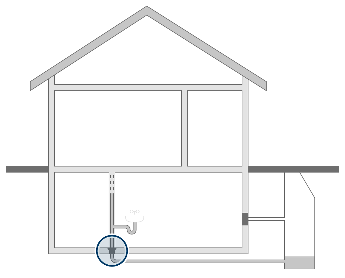 Tundish with integrated step protection for setting in floor slab concrete for perfect sealing to the underground sewer pipe. Gastight and watertight connection to the floor slab using integrated 3-ribbed seal. …