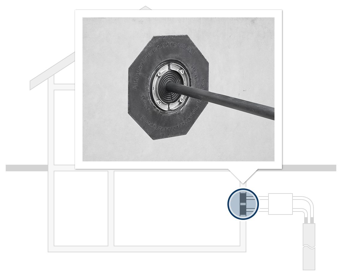 Allows sealing in all wall types thanks to the combination of a flange and 3-ribbed seals. For setting in concrete, closed on both sides ready for installation.