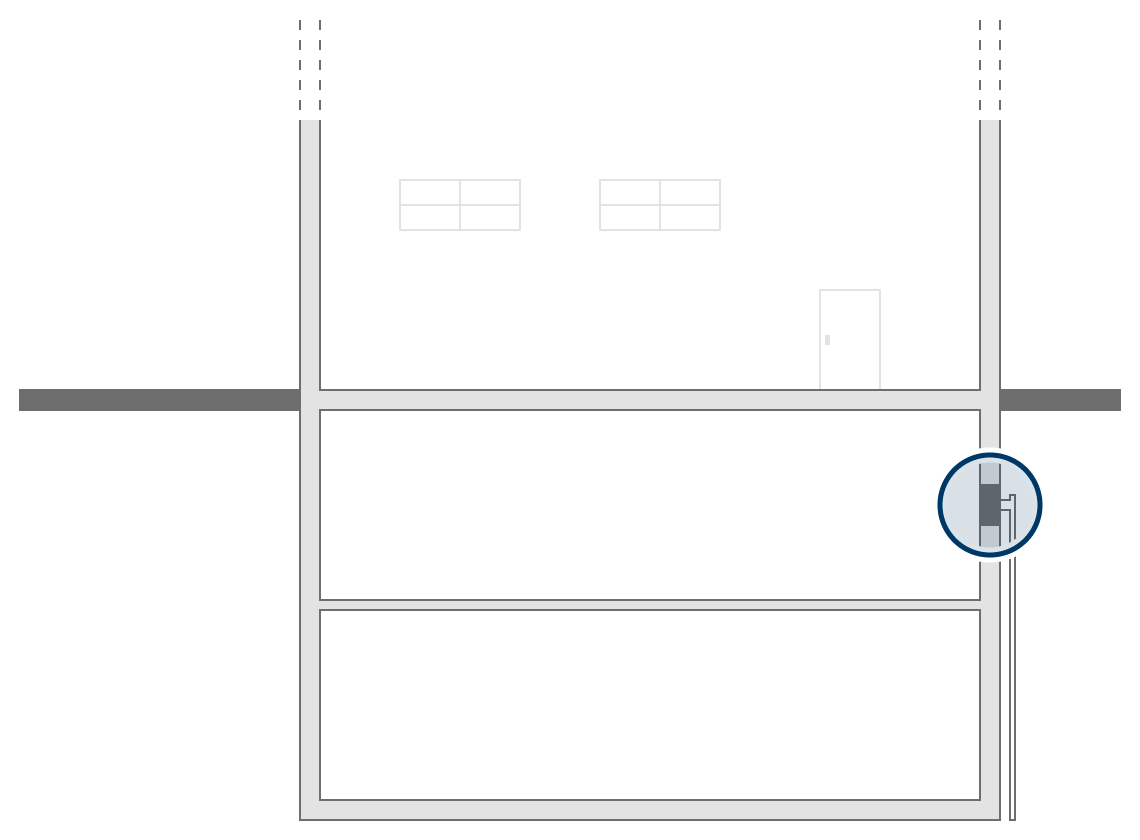 Sealing to the wall is provided on both sides by a surface seal, which is pressed to the wall with nuts. Flat or round earthing straps can be connected using a connection lug with cross clamp.